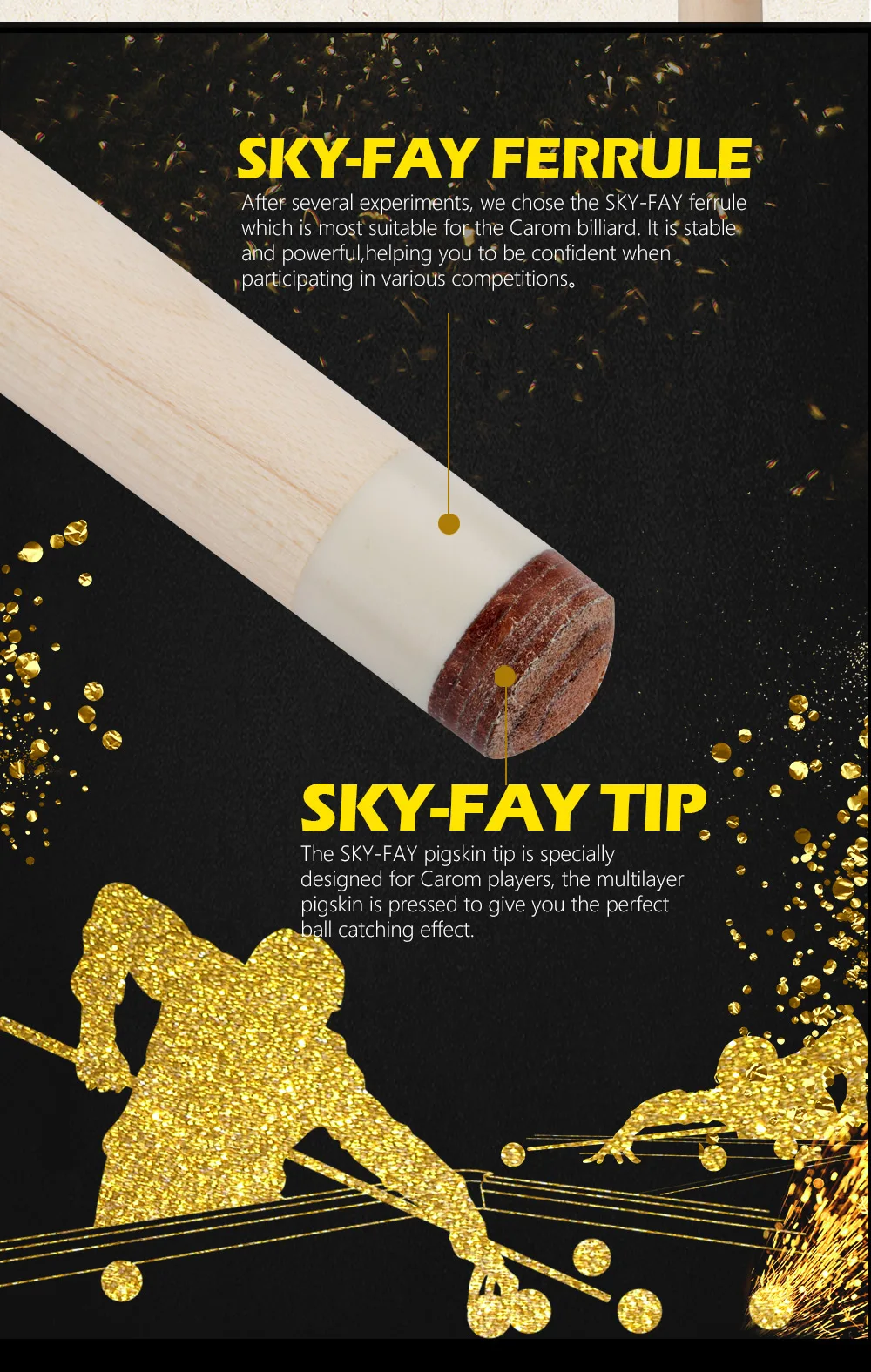 4.After several experiments, we chose the SKY-FAY ferrule which is most suitable for the Carom billiard. It is stable and powerful,helping you to be confident when participating in various competitions.