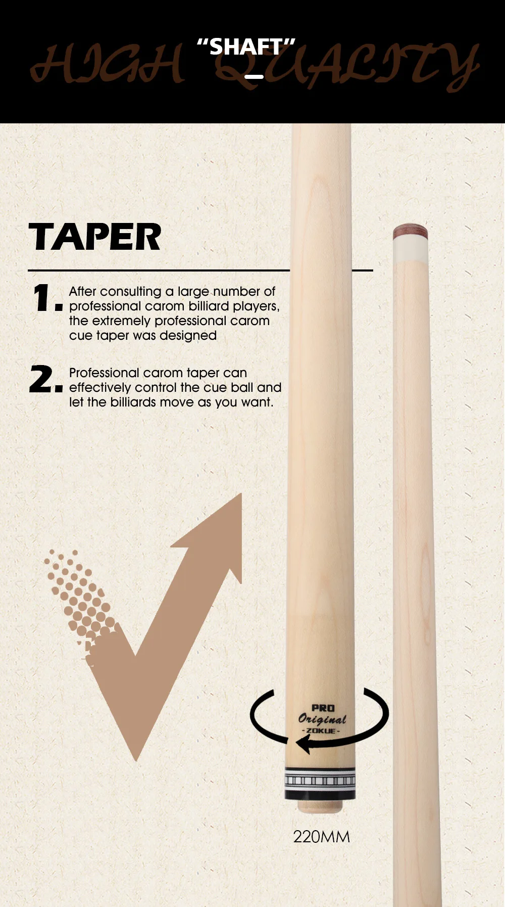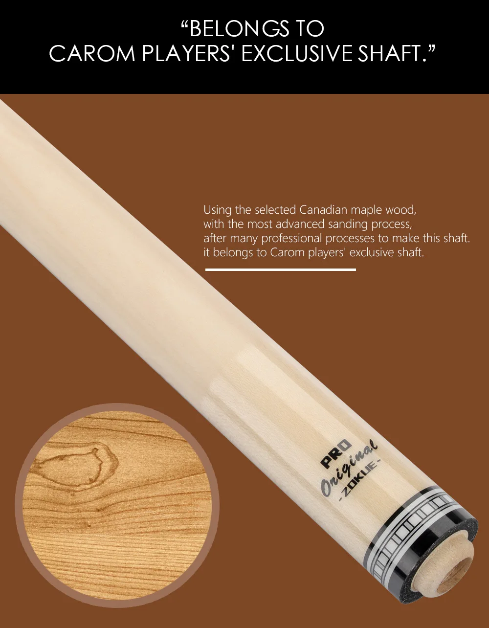 1.Using the selected Canadian maple wood, with the most advanced sanding process,after many professional processes to make this shaft. it belongs to Carom players’ exclusive shaft.