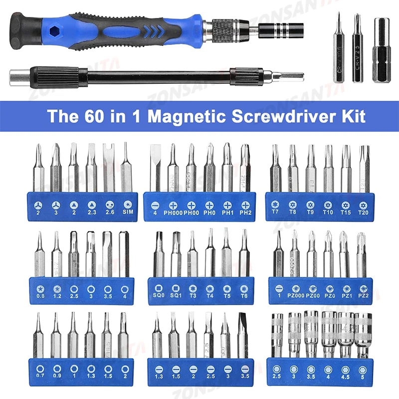 ZONSANTA 60 in 1 Magnetic Screwdriver Set Precision Screw Driver Multi-function Precision Mobile Phone Repair Device PC Camera